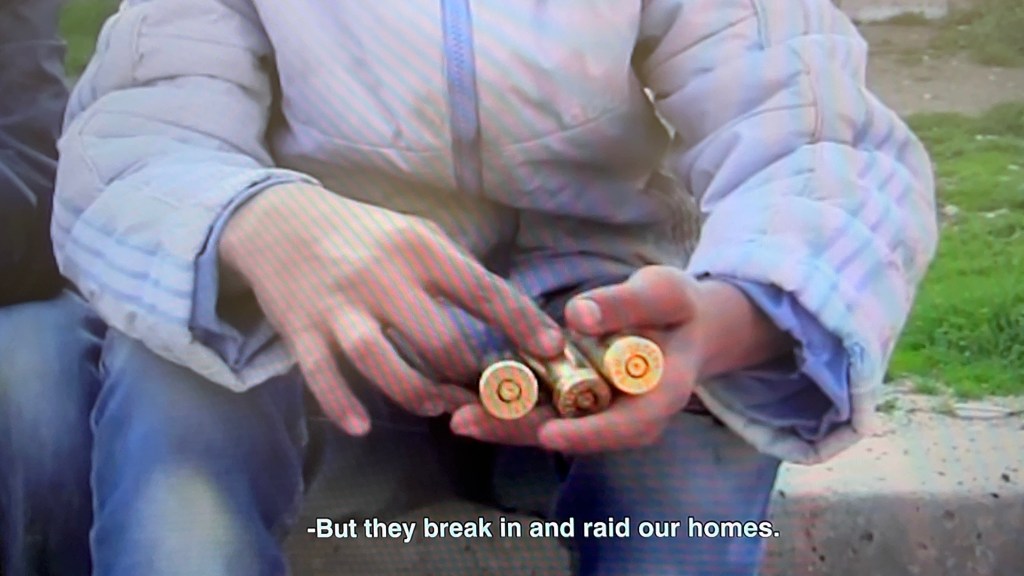 Children’s relationship to the barricade became a kind of war-game metaphor. Faced with curfews that lasted for months, children found various ways not only to survive but also to have fun. The photo below captures a moment from one of these games. To get from one street to another, they would first check — using makeshift periscopes placed at the end of the barricade — whether there was an armored vehicle at the corner. And thus, with the ingenuity unique to children, they figured out how to cross from one street to the next.