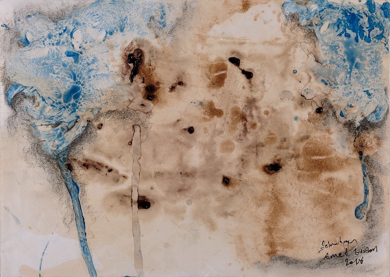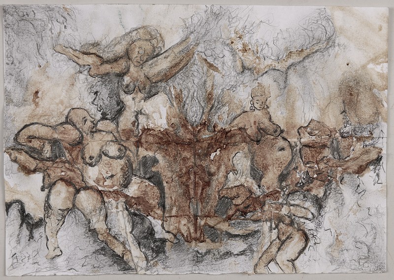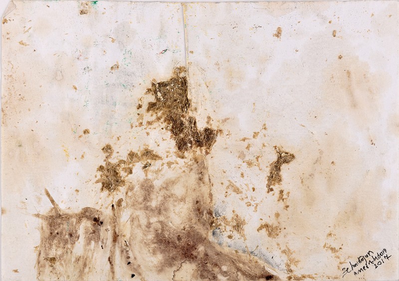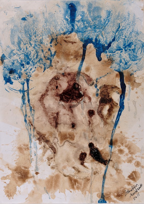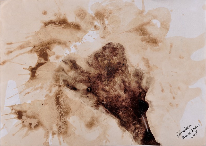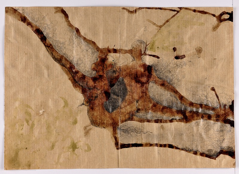 21 x 15cm. . Menstrual blood, coffee, bird blood, tea, mud, pencil, on paper. 2017, Diyarbakır prison.