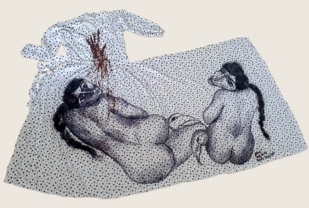 Since the prison administration forbids art supplies, my family and I have found another method. My mother sent me a dress in the quota of authorized clothing. My friend Sozdar managed to smuggle in a felt point pen. All this was a rather difficult process, but that much more exciting for that very reason.