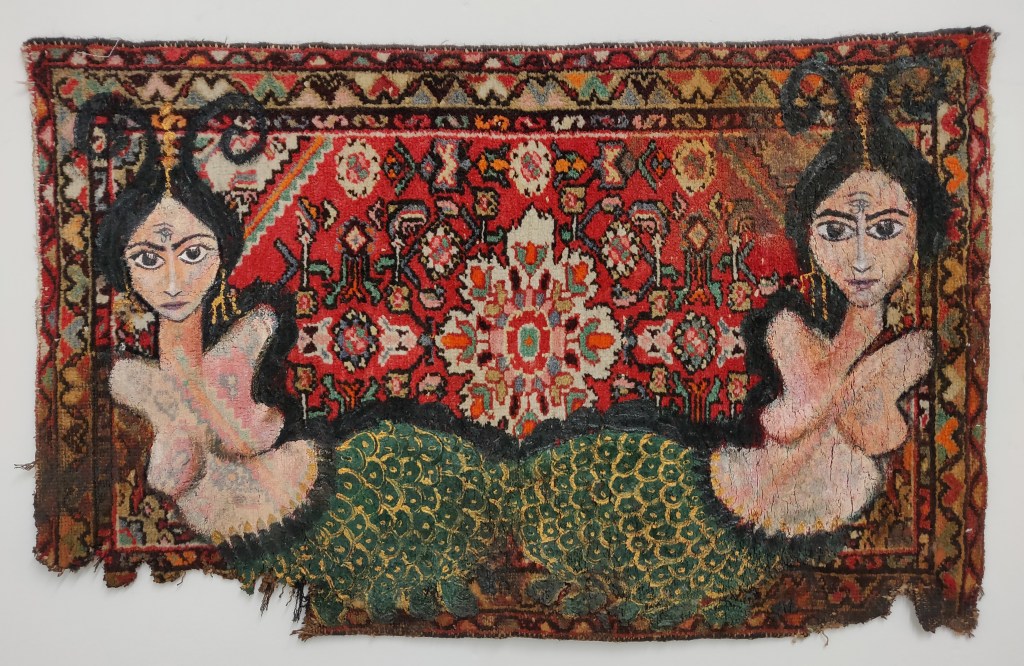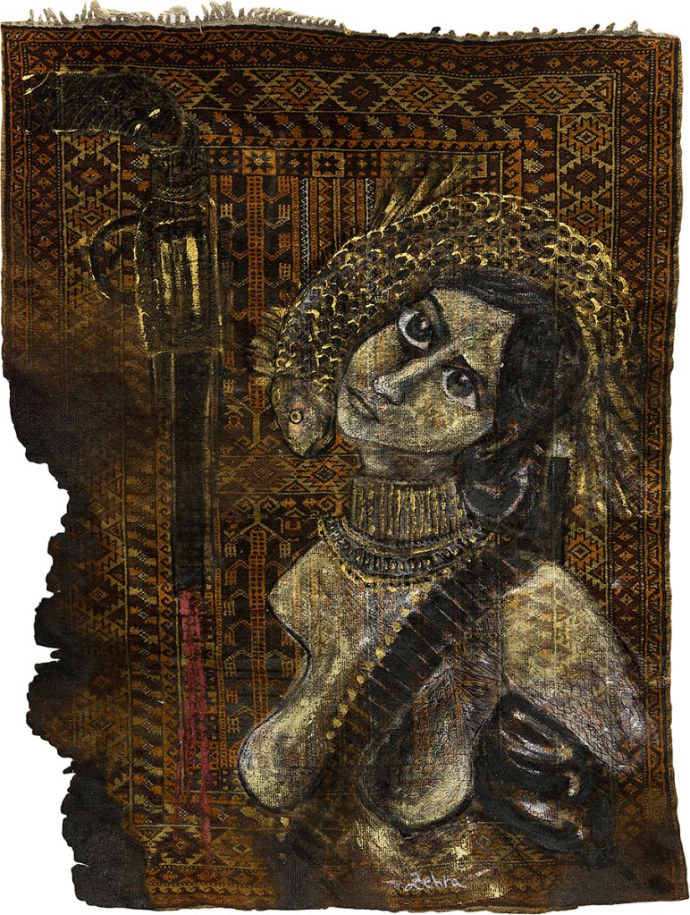 Shahmeran, 2020. On carpet, acrylic, gold paper, 100 x 185 cm. Ph. Ludovica Mangini. Prometeo Gallery, Milano.