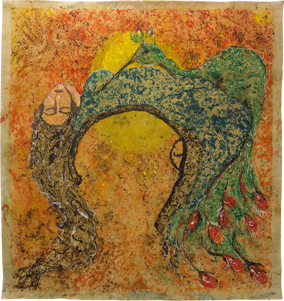 Bawerî (Belief) 2020. On canvas, oil paint, pomegranate peel juice, powder pastel, 185 x 200 cm. Ph. Ludovica Mangini. Prometeo Gallery, Milano.